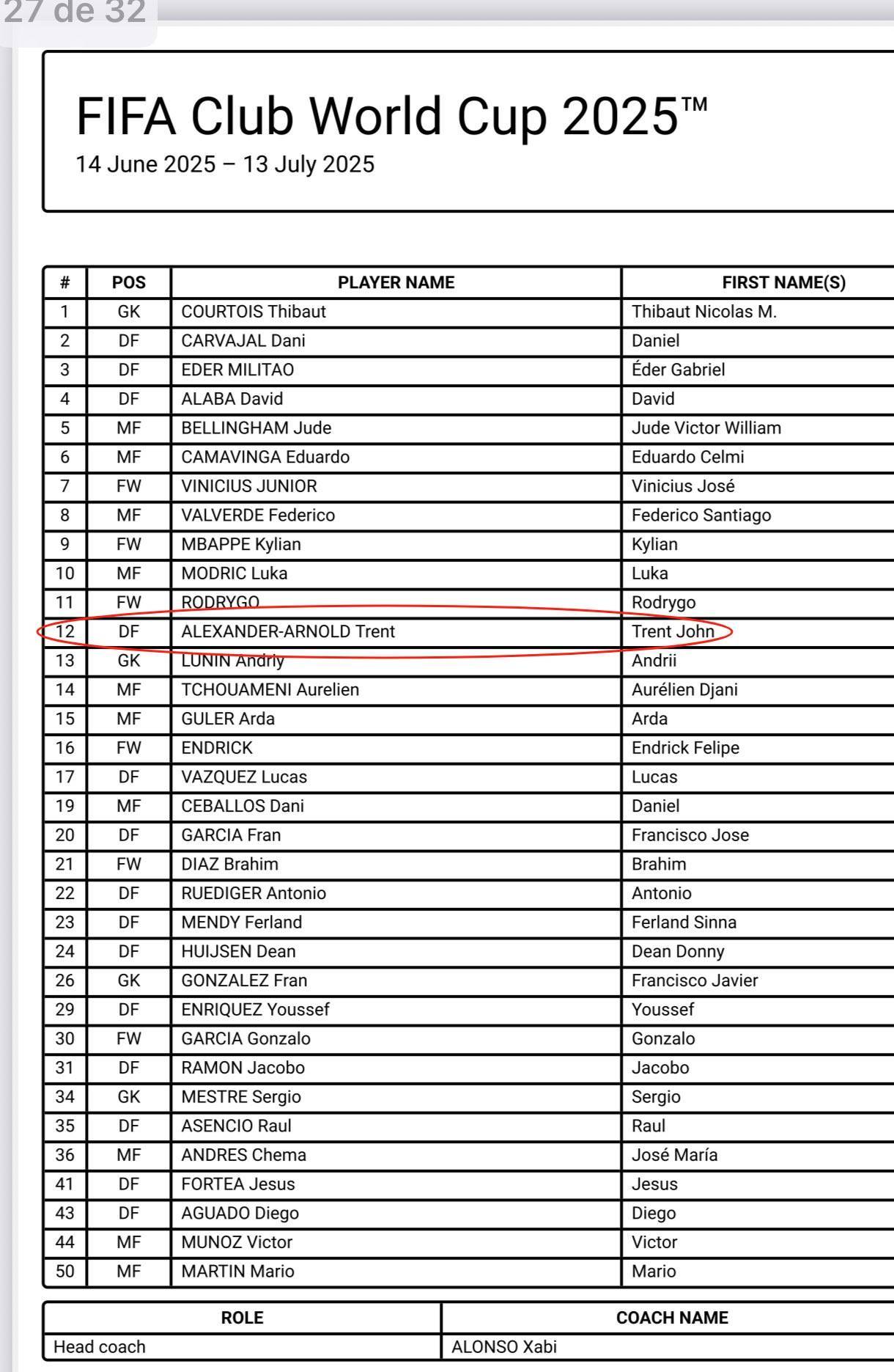 直播吧06月12日讯 世俱杯官方公布各个参赛球队名单,皇马新援阿诺德将身穿12号球衣,而非此前在利物浦一直身穿的66号。根据西甲的规定,不允许球员球衣号码的数字超过25,这也和他们联赛中最多可以注册球员的数量相对应。只有年轻球员可以身披数字超过25的球衣,他们不必以相同的方式注册。比如,劳尔-阿森西奥就被允许身披35号球衣。从利物浦青训营开始,阿诺德一直身披66号球衣