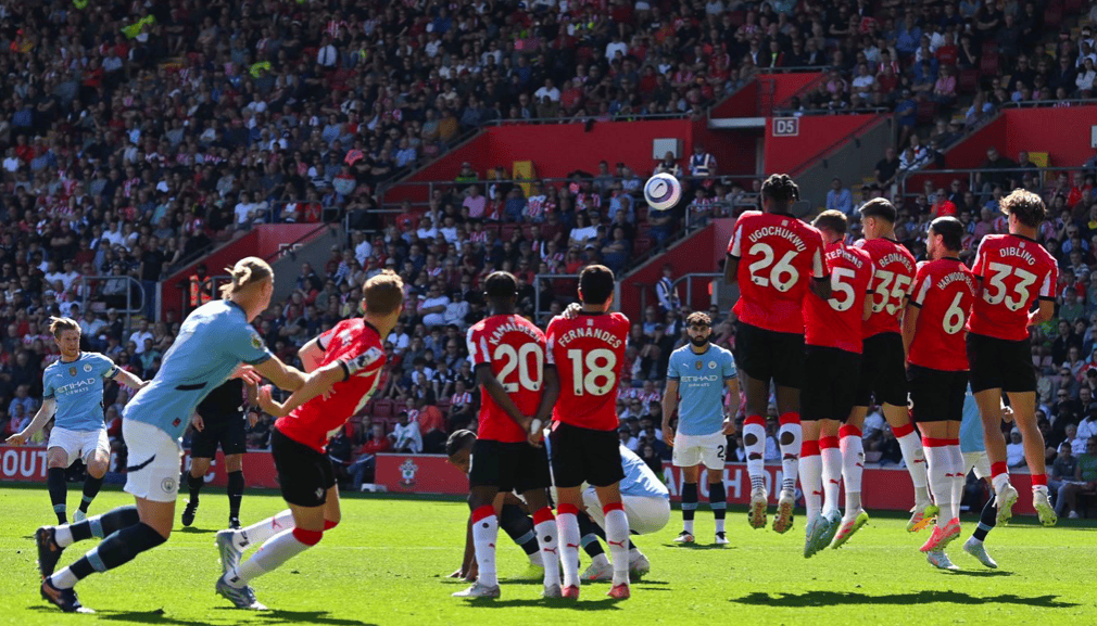 下半场开始后情况依旧,曼城继续主攻,南安普顿众志成城全力防守。第60分钟,曼城获得前场任意球,福登将球吊入禁区,哈兰德在拼抢之下没能碰到皮球。